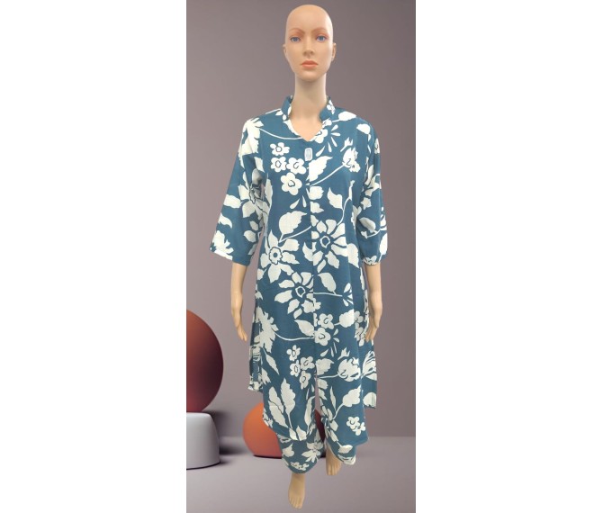 Relax in style with this elegant blue floral printed night suit, designed for ultimate comfort and a graceful look. Crafted from soft, breathable fabric, it feels gentle on the skin and ensures a peaceful night’s sleep. The soothing blue base with delicate floral prints adds a fresh and feminine touch. Perfect for nighttime wear or lounging at home, this night suit combines comfort, style, and ease for everyday relaxation.